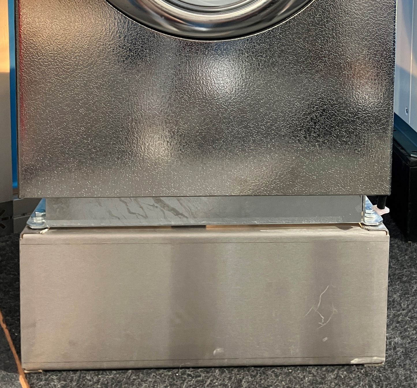 Der praktische Maschinensockel ermöglicht ein bequemes be- und entladen der Wäsche.